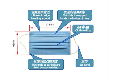 | اسم المنتج | قناع وجه جراحي غير منسوج يمكن التخلص منه مع ربطات عنق |